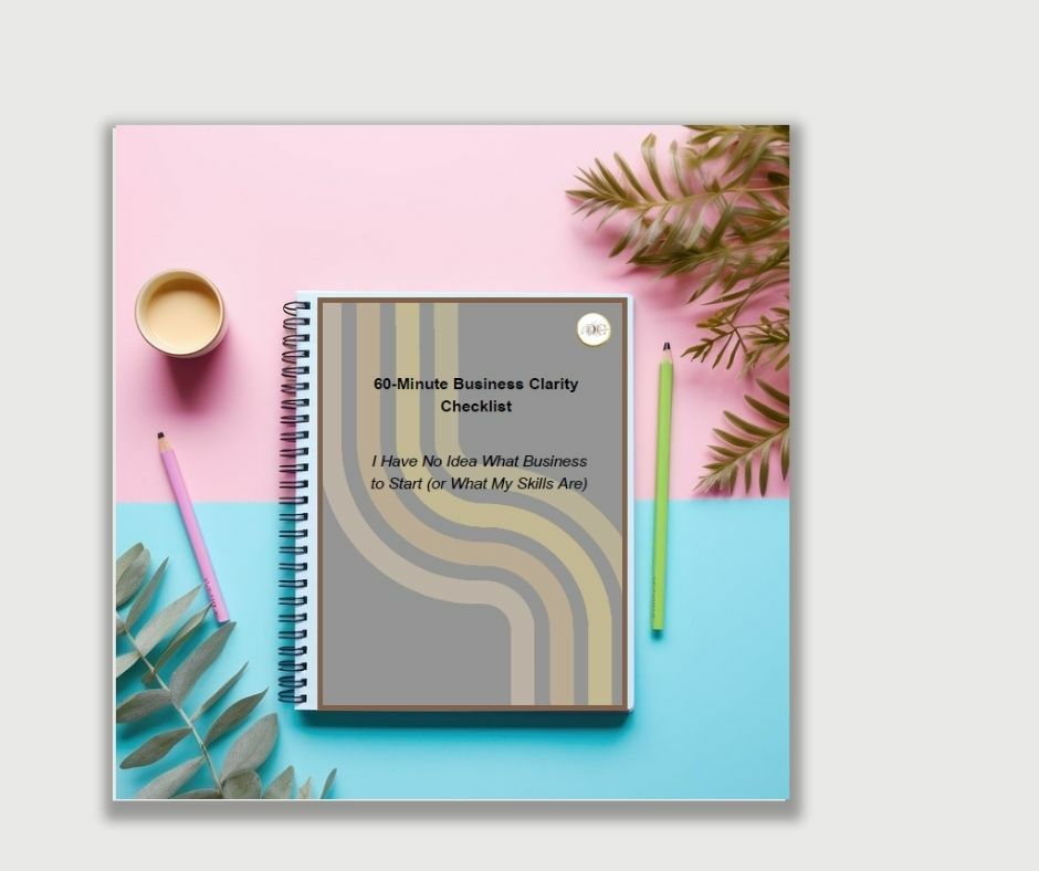 The 60-Minute Business Clarity Checklist is the first guided exercise for anyone who wants to start a business but feels unsure where to begin. In one focused hour, you’ll uncover your existing skills, identify real opportunities, and walk away with clear, realistic next steps — without pressure to have it all figured out.